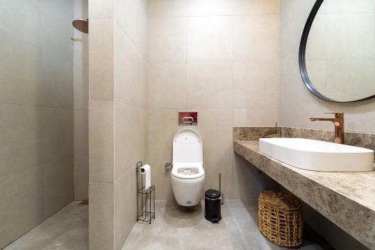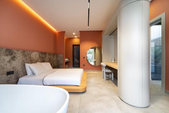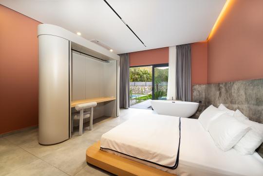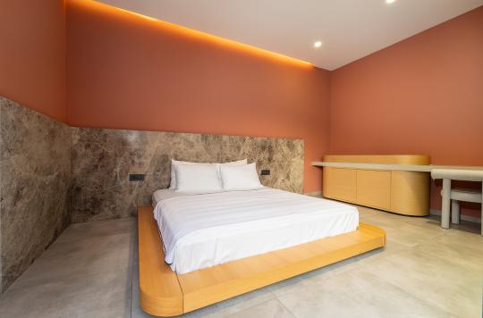1.Yatak Odası : Master suit yatak odasında bir adet çift kişilik yatak, küvet, komodin, elbise dolabı, klima ve banyo bulunmaktadır.