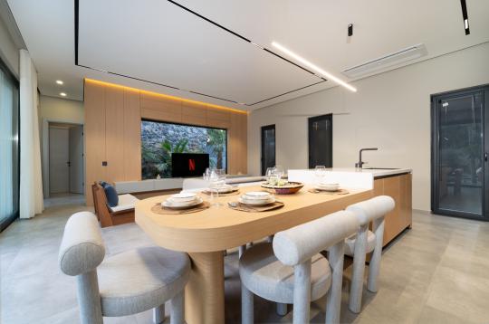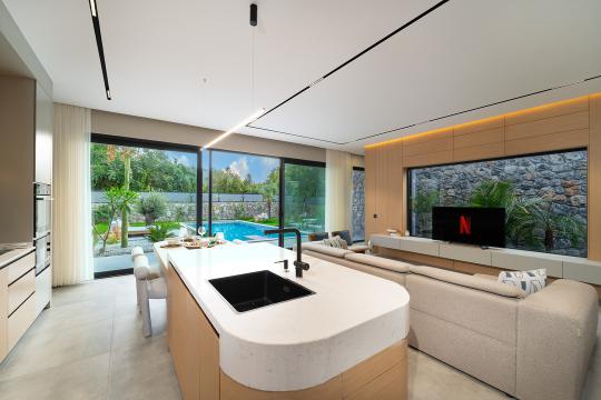 Ekstralar : Villa bahçesinde korunaklı özel yüzme havuzu bulunmaktadır. Master suit odasında küvet bulunmaktadır. Salon ve tüm odalarda klima mevcuttur, ayrıca ücretsiz internet bulunmaktadır.Önemli Bilgiler : Havuz ve bahçe bakımı günde bir kez görevliler tarafından düzenli olarak yapılmaktadır. Elektrik, su, gaz ücretleri fiyatlara dahildir. Ayrıca bir ücret talep edilmemektedir. Villa size temiz olarak teslim edilmektedir. Ekstra yeni çarşaf ve havlu, ekstra temizlik, kiralık araç, sağlık vs. sigortaları fiyatlara dahil değildir. Villalarda hijyen amaçlı tüketim ihtiyaçları ( tuvalet kağıdı, su, baharat vs. ) bulunmamaktadır. Doğa içerisinde konuma sahip olan tüm villalarımızda düzenli olarak ilaçlama yapılmaktadır. Buna rağmen çevrede kelebek, böcek, sinek vs. bulunma ihtimali vardır. Havuzu korunaklı villalarımızda kesinlikle %100 görünmeme garantisi vermemekteyiz. Bu villalarımızda her zaman %5 sakınma payı mevcuttur.
