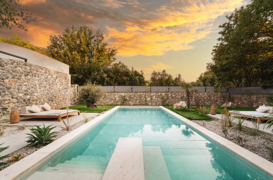 Özel Bahçe : Villa Love özel bahçesinde, mini bahçe mutfağı, 4 kişilik masa - sandalye takımı, güneşlenme terası, havuz, barbekü, 4 adet şezlong ve güneşlenme şemsiyesi bulunmaktadır.