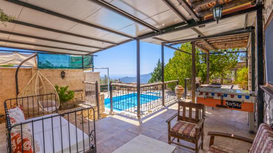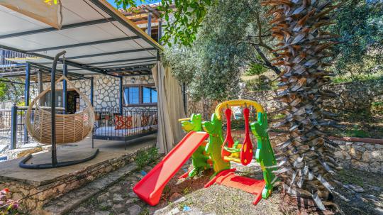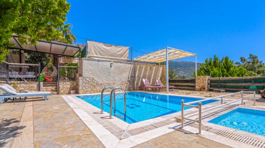 Villa Mandolin, tam donanımlı mutfağı, konforlu yatak odaları ve ferah oturma alanı ile ev rahatlığını aratmayan bir yaşam alanı sunmaktadır. Sabahları deniz manzarasına karşı kahvaltınızı yapabilir, gün içinde havuzda serinleyerek tatilin keyfini çıkarabilirsiniz. Çocuk havuzu sayesinde minik misafirler için güvenli bir oyun alanı sunan villa, muhafazakar aileler için gözlerden uzak, özel bir tatil fırsatı yaratmaktadır. Kalkan merkeze kolay ulaşım imkanı sayesinde, restoranlar, plajlar ve bölgenin doğal güzelliklerini keşfetmek oldukça pratik hale gelir. Villa Mandolin, sakin, konforlu ve huzurlu bir tatil arayan misafirlerini bekliyor! 🌿🏡✨
