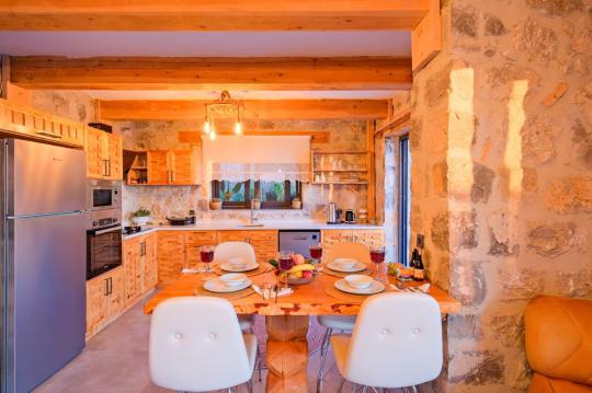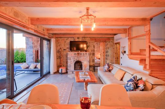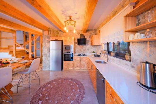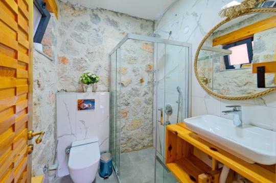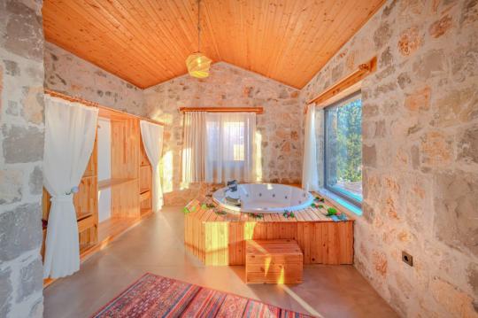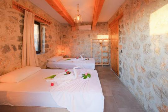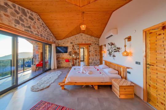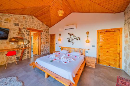 Villamız maksimum 4 kişi konaklama kapasitesine sahiptir. Toplamda 2 yatak odası ve salon mutfak bulunmaktadır. Birinci yatak odasında çift kişilik yatak, TV, klima, ebeveyn banyosu ve jakuzi bulunmaktadır. İkinci yatak odasında 2 adet tek kişilik yatak ve klima mevcuttur. Ortak alanda, şık bir salon-mutfak, , televizyon, WC + duş ve klima mevcuttur.