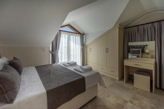 1.Yatak Odası: 1 adet Çift kişilik yatak, Elbise Dolabı,Komodin, Makyaj Masası, Klima,Jakuzi, banyo/WC
