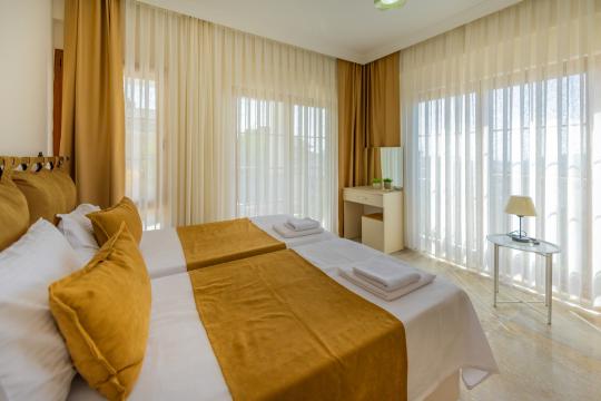 2.Yatak Odası:2 adet Tek kişilik yatak, Elbise Dolabı,Komodin, Makyaj Masası, Klima, Ortak banyo/WC