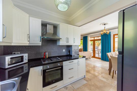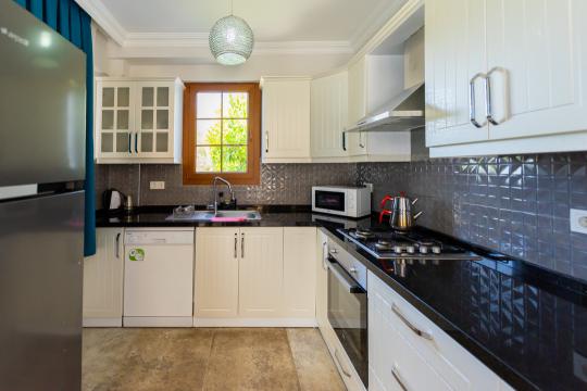 Mutfak :Modern Açık Amerikan mutfak, buzdolabı,çamaşır makinesi, kettle,kahve makinesi, ankastre fırın, dörtlü ocak, mikrodalga fırın, bulaşık makinesi, çatal, kaşık, bıçak, tencere ve tavalar , yemek takımı ,vb. olup tam donanımlıdır.