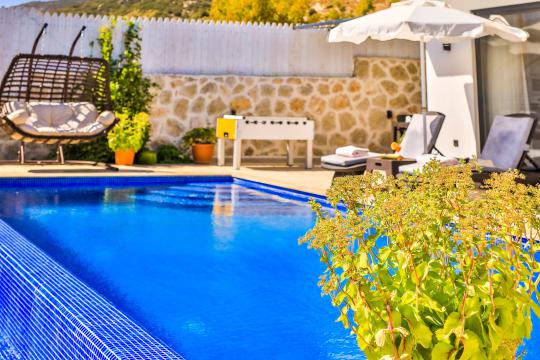 Viilamız 2021 yaz sezonunda faaliyete geçen bir villa olup; özel yüzme havuzu, barbeküsü, otoparkı, wifi internet bağlantısı ve netflix seçenekleri mevcuttur. Yinevillamızda kapalı(ısıtmalı)havuz, Sauna ve hamam tarzında banyosu ile lüx bir tatil tadında kendinizi şımartabilirsiniz. Havuz terasında bulunan salıncakta dinlenebilir isterseniz de oyun aletleriyle (langırt) keyifli vakit geçirebilirsiniz. Villamız dışarıdan göürlmesi engellenerek muhafazakar hale getirilmiştir.