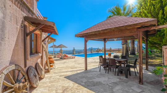 Salon : Salonumuzda oturma grubu, klima, LCD TV, sehpa, uydu alıcı bulunmaktadır. Havuz terasına çıkış yapılabilmektedir.