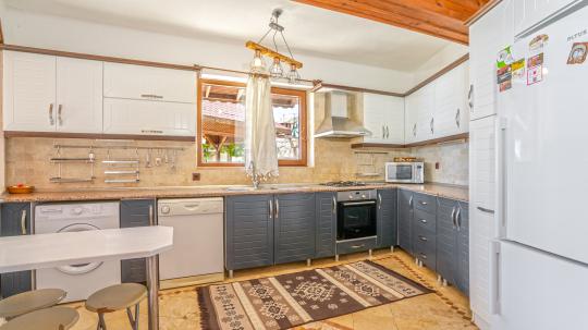 Mutfak : Modern Amerikan mutfakta buzdolabı, bulaşık makinası,fırın,4'lü ocak, mikrodalga fırın, kettle, 8 kişilik yemek masası, yemek takımları, çatal ve bıçak takımları, tencere ve tava takımları, bardaklar bulunmaktadır