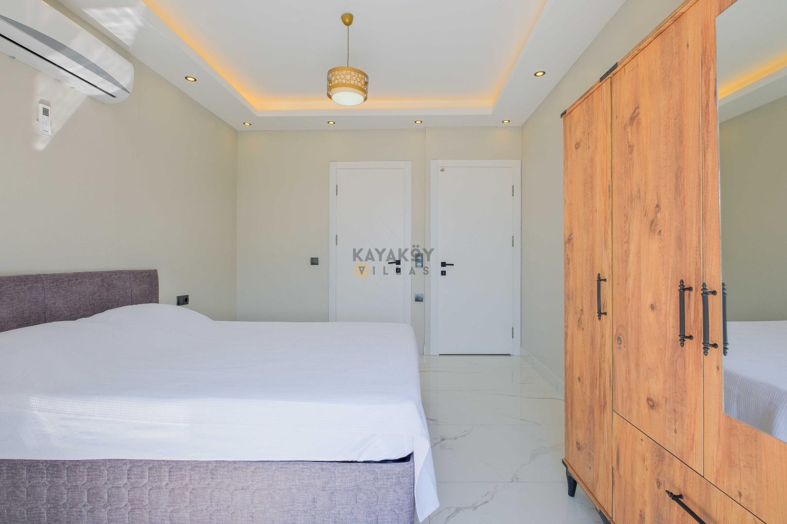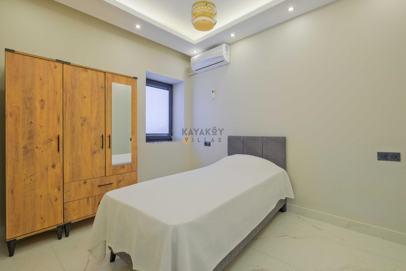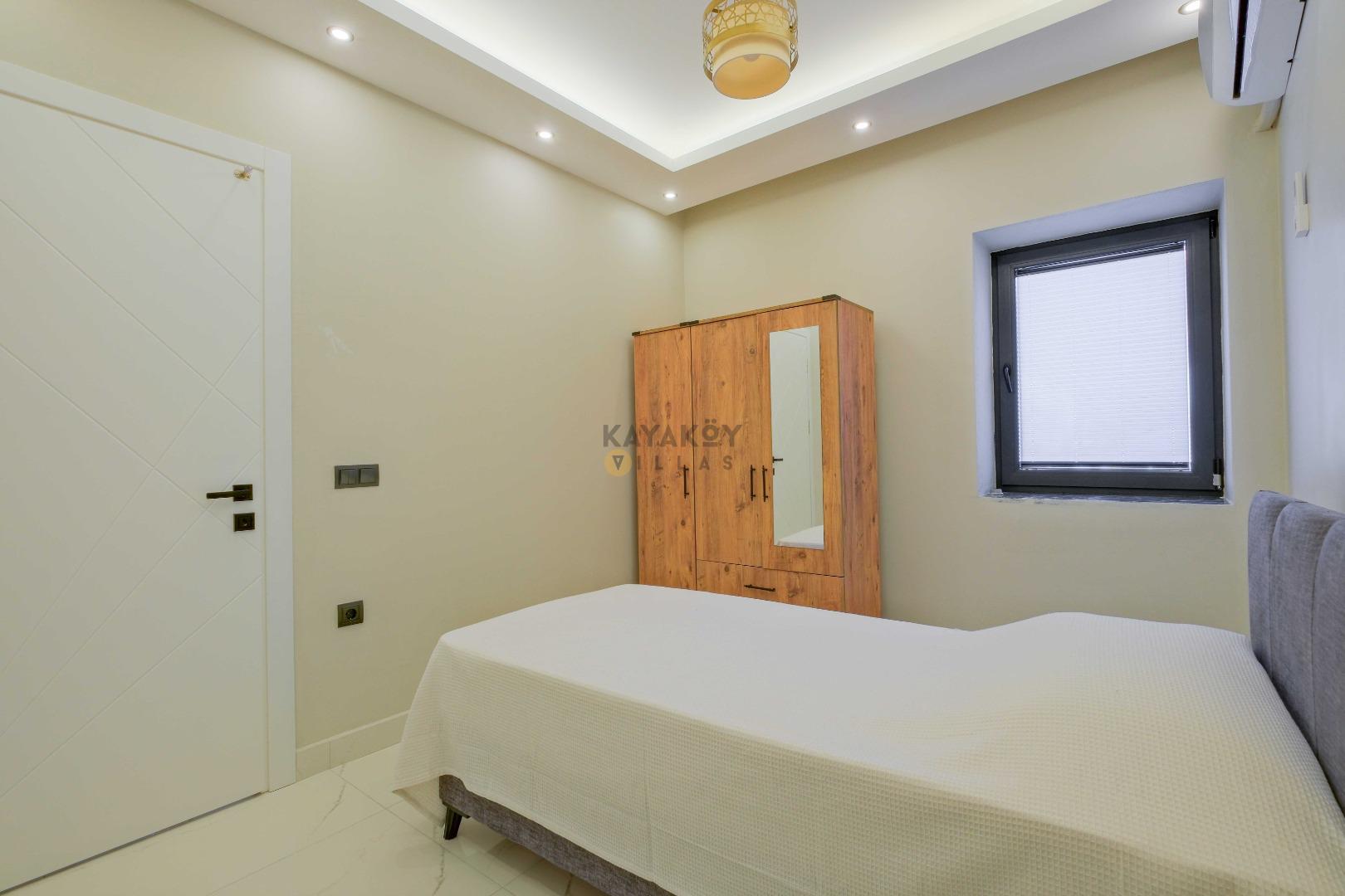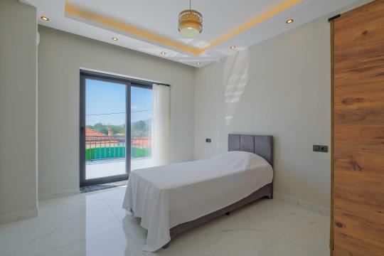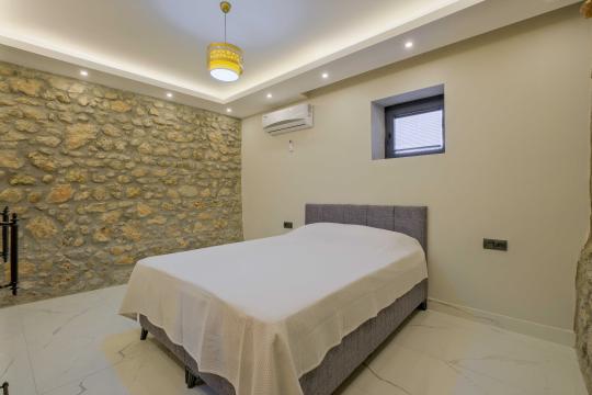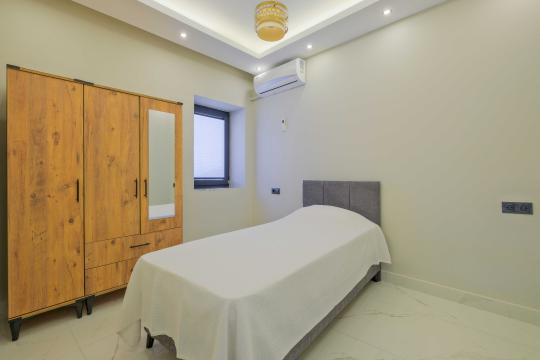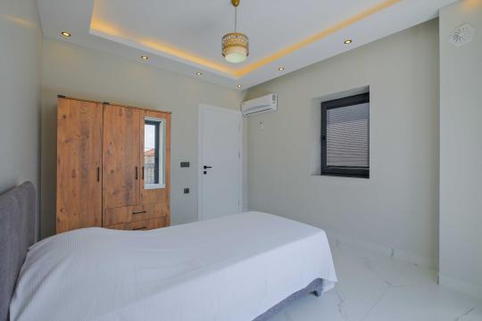Villada toplam 4 yatak odası bulunur; bu odalardan ikisinde çift kişilik yatak, diğer iki odada ise tek kişilik yataklar yer alır. Tüm odalarda klima, elbise dolabı ve komodin gibi konfor donanımları mevcuttur ve 2 yatak odasında özel banyo/WC düzeni bulunur.