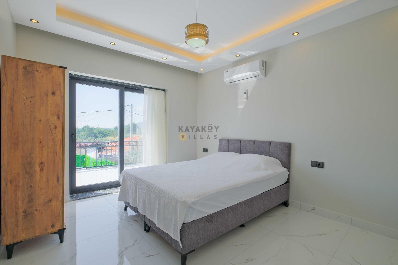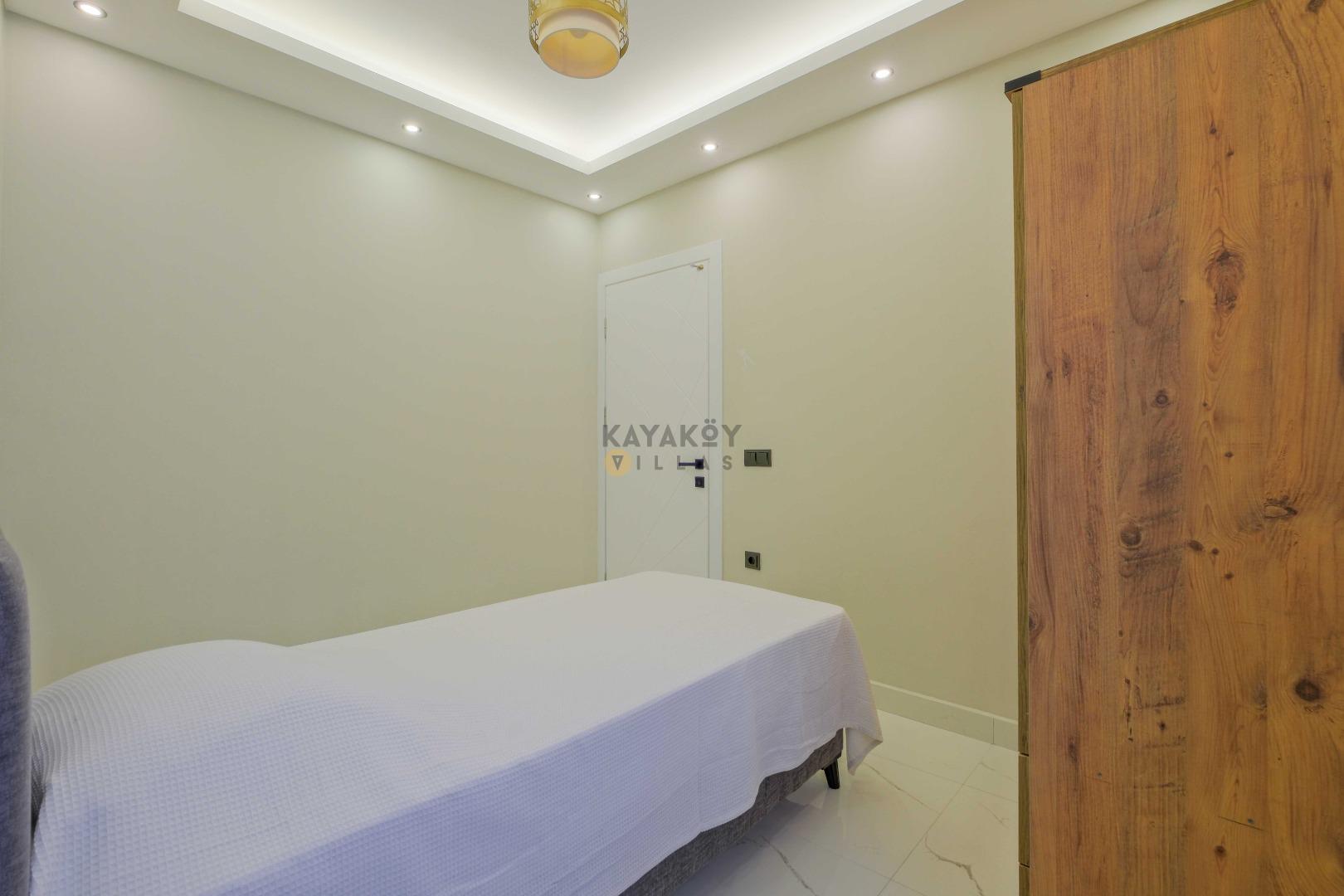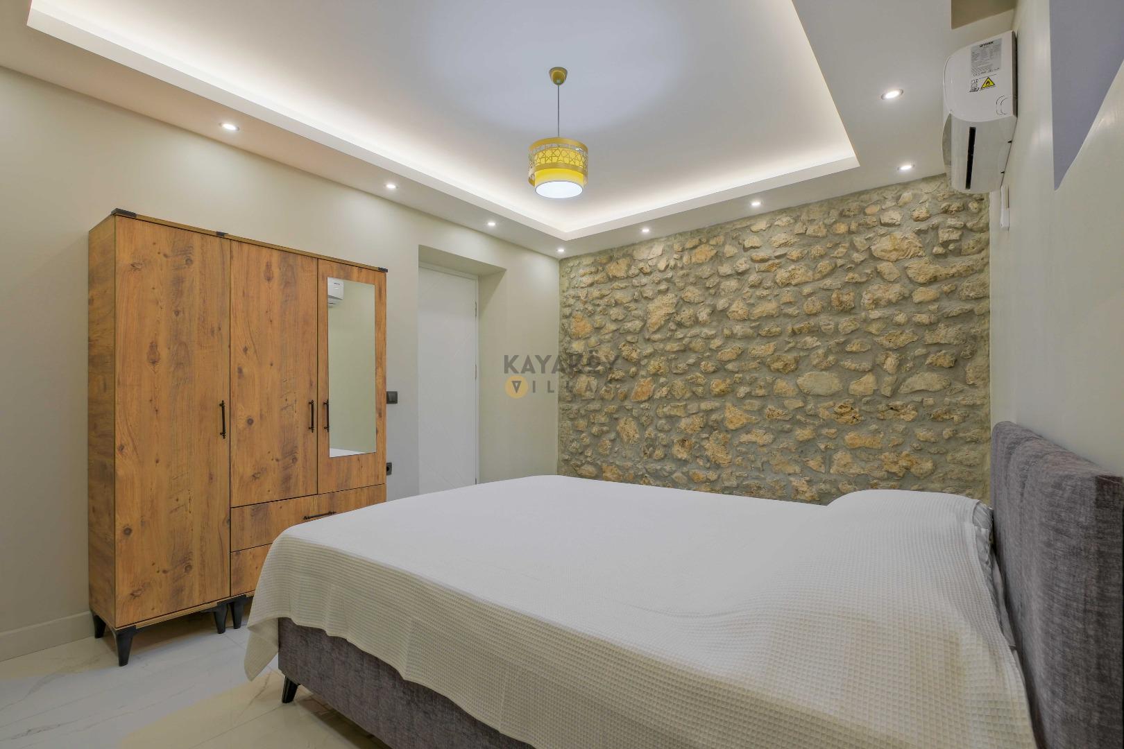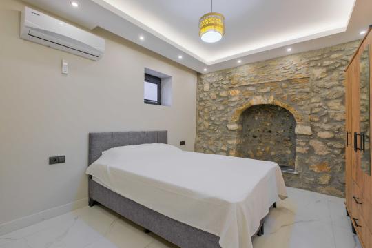 Villada toplam 4 yatak odası bulunur; bu odalardan ikisinde çift kişilik yatak, diğer iki odada ise tek kişilik yataklar yer alır. Tüm odalarda klima, elbise dolabı ve komodin gibi konfor donanımları mevcuttur ve 2 yatak odasında özel banyo/WC düzeni bulunur.