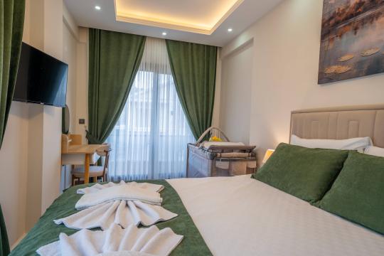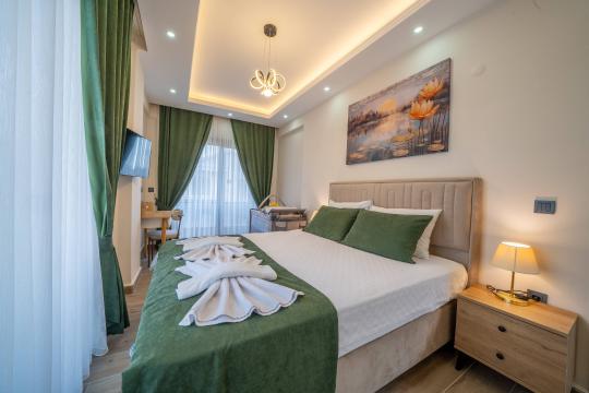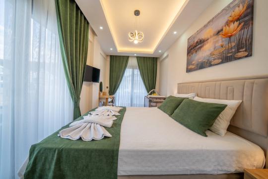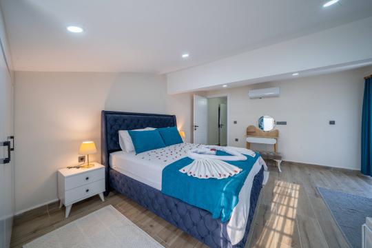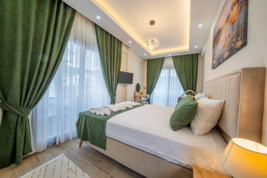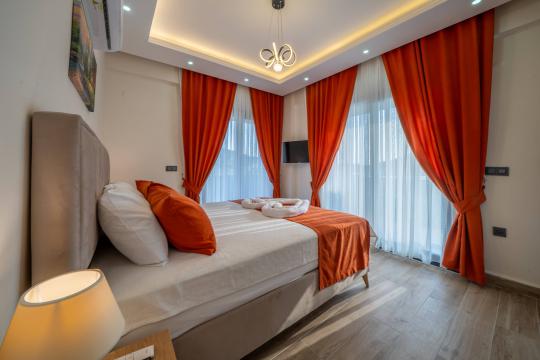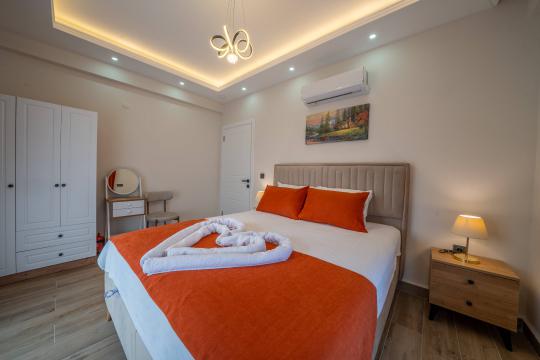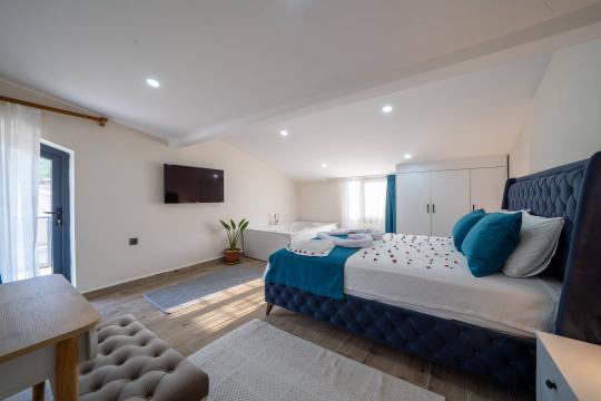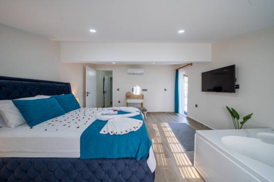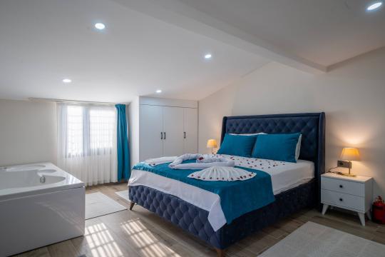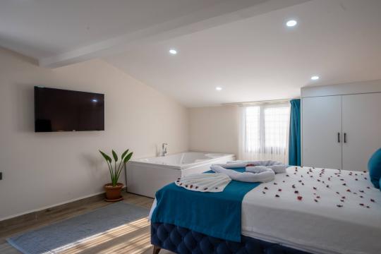 1. Yatak Odası : 1 Çift Kişilik Yatak + Klima + Komidin + Elbise Dolabı + jakuzi + TV