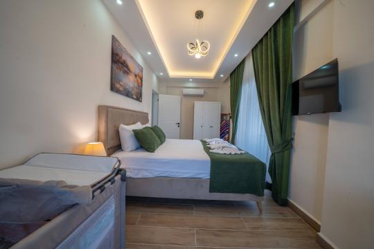 2. Yatak Odası : 1 Çift Kişilik Yatak + klima + Komidin + Elbise Dolabı + TV