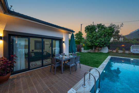 Ekstralar : Villa Mete korunaklı olup havuzu dışarıdan görünmemektedir. Villa içerisinde kablosuz internet bulunmaktadır. Villa temiz bir şekilde teslim edilmektedir. Bütün odalarda klima bulunmaktadır.