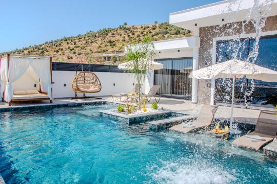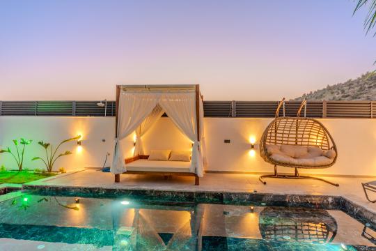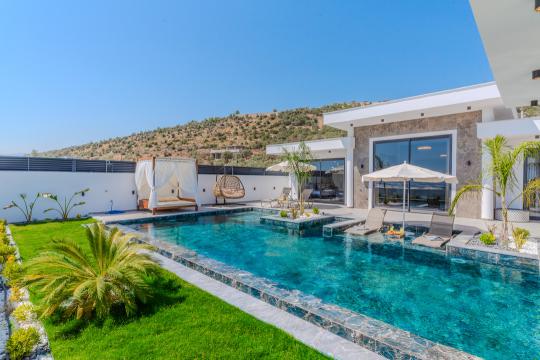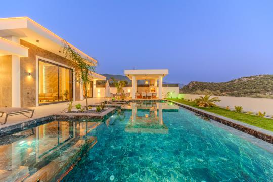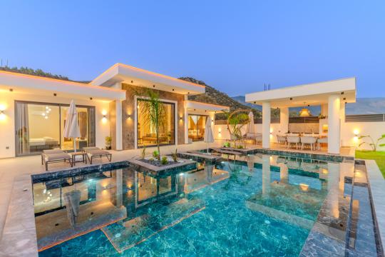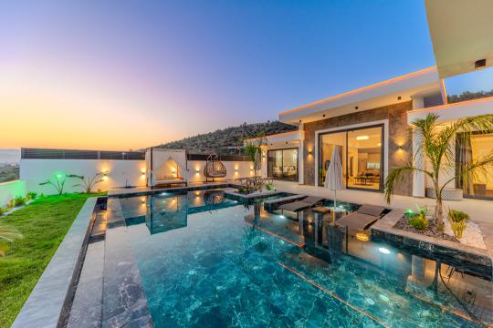 Villa Milenyum, Kalkan/Çavdır bölgesinde bulunan, 5 kişi konaklama kapasiteli, korunaklı, sauna, hamam ve çift jakuziye sahip villa seçeneklerimizden biridir. Villa Milenyum, yemyeşil geniş bir bahçe alanına ve havuz terasına sahip olup muhafazakar aileler, çekirdek aileler için eşsiz bir seçenek olacaktır. Villamız keyfinize keyif, anılarınıza anı katacak sizin için tasarlanmış bir villadır. Şıklığı ve konforlu dizaynıyla göz kamaştıran, ihtiyacınız olan her şey mevcut olup tüm yılın yorgunluğunu sakin, gözlerden uzak doğa içerisinde keyifli bir şekilde geçirmeniz için hazırdır.