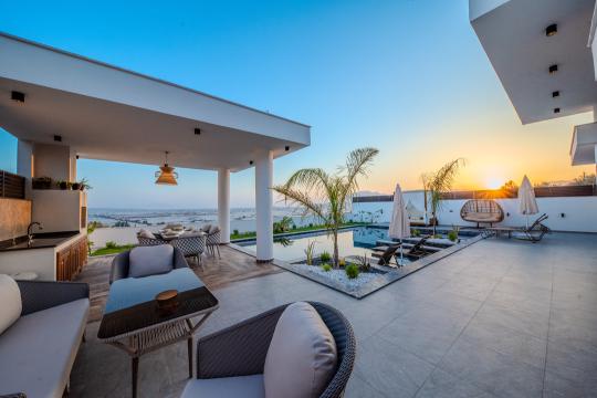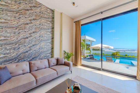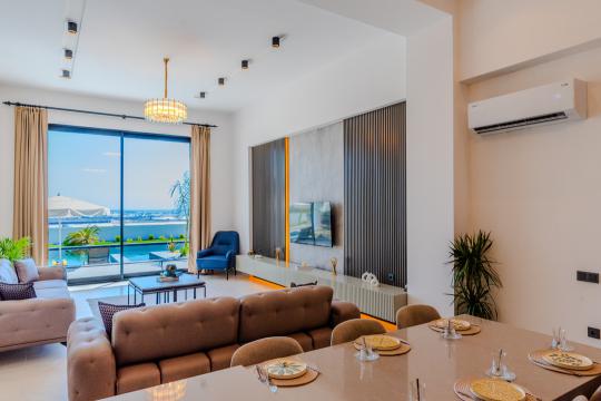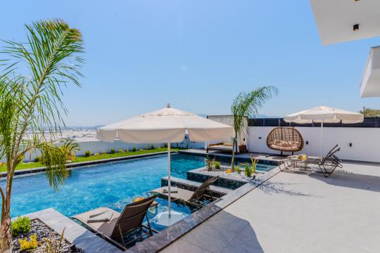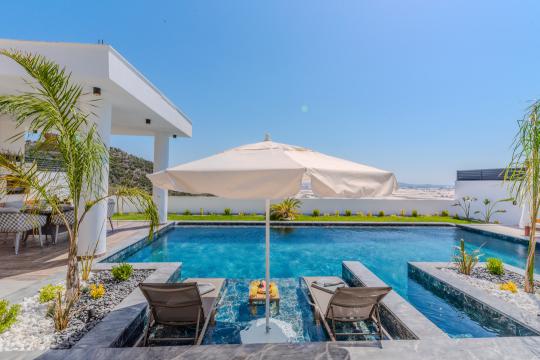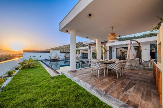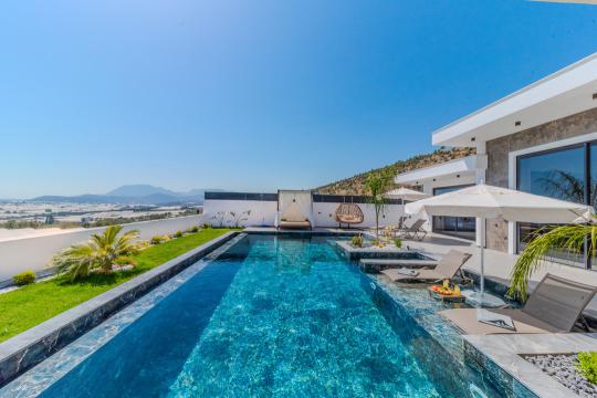Not:Villanın güneşlenme terası ve havuzunun dış taraftan görünmemesi için gerekli önlemler alınmıştır fakat villanın diğer bölümlerinin görünürlüğü kesin olarak garanti edilememektedir.