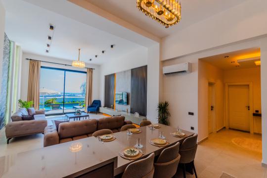 Havuz manzarası karşısında oturma grubumuz, televizyon, uydu alıcısı, klima, lavabo, ütü, ütü masası tuvalet bulunmaktadır.