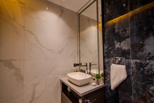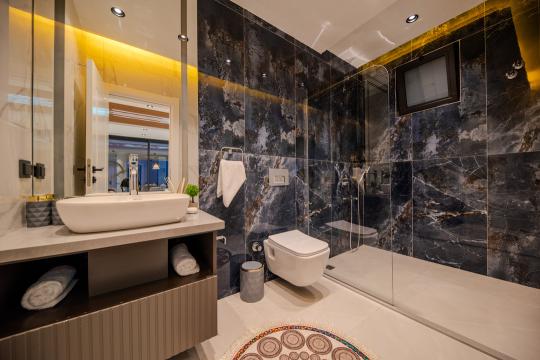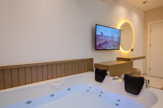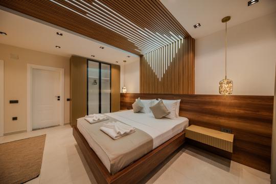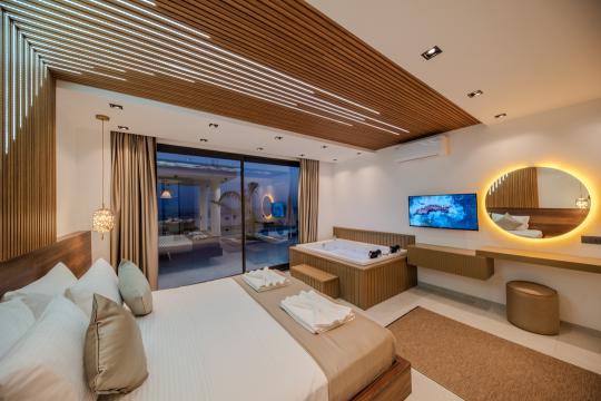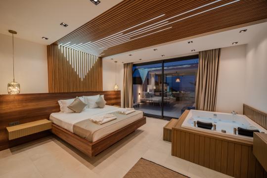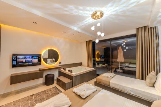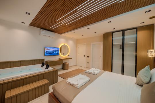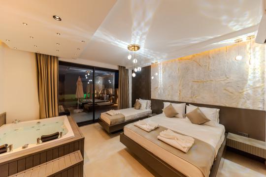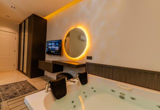 1. Yatak odası: 1 adet çift kişilik yatak, makyaj masası, televizyon, klima, elbise dolabı, jakuzi, komodin, tuvalet ve banyo bulunmaktadır.