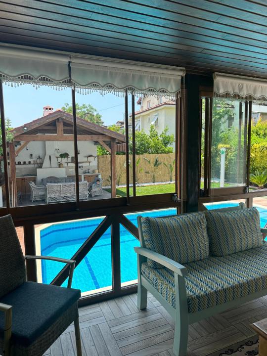 Bu huzurlu konaklama yerinde ailece dinlenebilirsiniz.tam müstakil cafe restoran sahil bandına yürüme mesefasinde fethiyenin en gözde merkezinde müthiş bir tatil villası büyük bahçesi botanik bahçesi havuzlu teraslı büyük bir villa