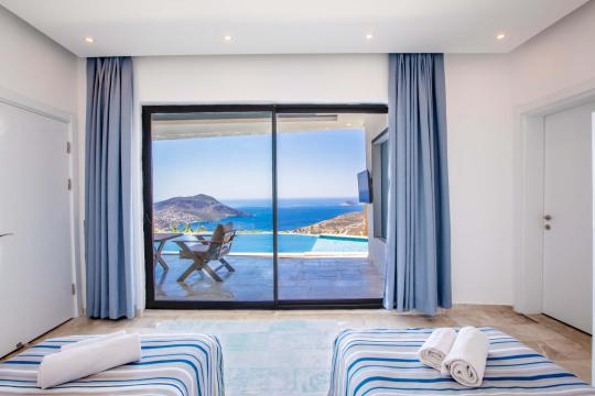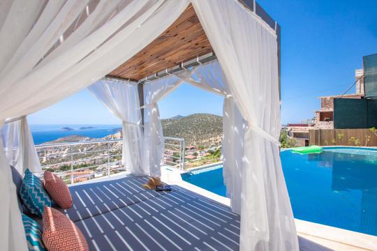 Kalkan 'ın Akbel mevkiinde bulunan, 2 yatak odalı ve 4 kişilik konaklama kapasitesine sahip lüks bir villadır. Eşsiz deniz manzarası, jakuzi lüksü, merkeze ve plaja yakın konumu ile villa; çekirdek aileler ve balayı çiftleri için uygun bir villadır.