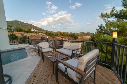 NOT:Suitin üst katında girişleri tamamen bağımsız olmak üzere 2+1 villa yer almaktadır. Müsaitlik doğrultusunda her ikisi de kiralanarak 6 kişiye kadar konaklama yapılabilir.