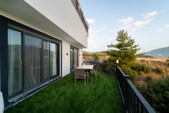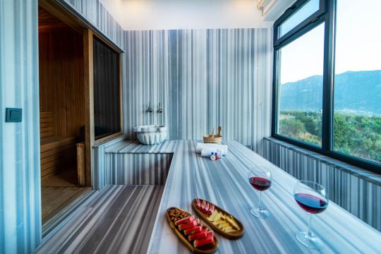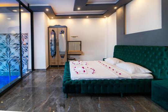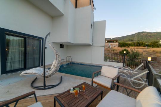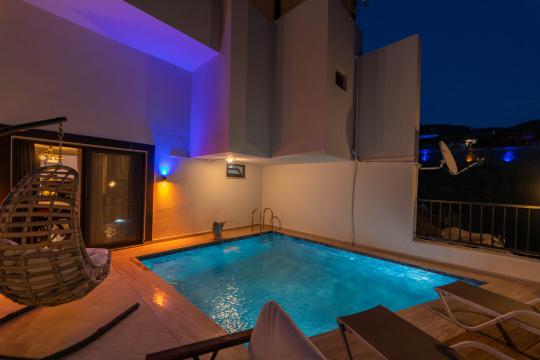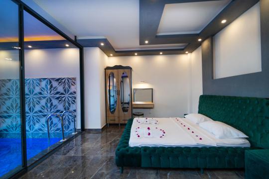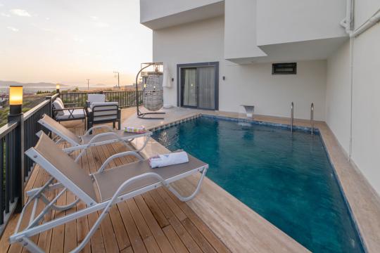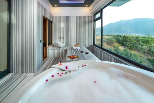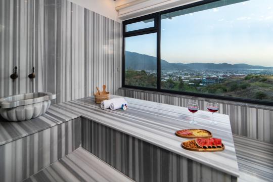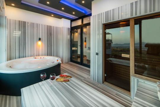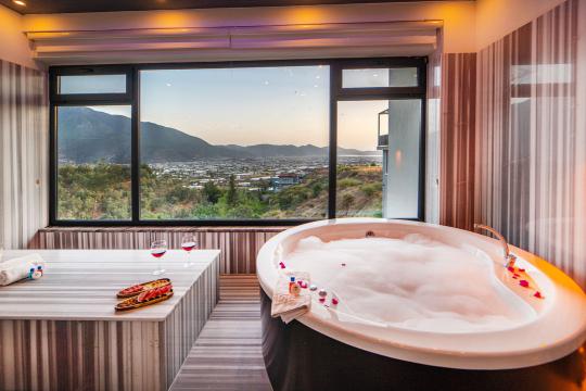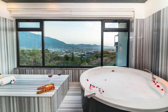 Tüm yıl boyunca iple çektiğiniz tatilinize ev sahipliği yapacak olan suitimizde gününüzü dilerseniz kapalı havuzunda, dilerseniz de sauna ve hamamında manzara eşliğinde dolu dolu geçirebilirsiniz. Eşinizle birlikte barbekü alanında lezzetli bir akşam yemeği hazırlayabilir, dilerseniz de rahatlıkla merkeze ulaşarak eğlence merkezlerini ziyaret edebilirsiniz. Ayrıca Fethiye'nin eşsiz koy ve plajlarına da aynı rahatlıkla ulaşabileceğiniz suitimiz unutulmaz tatil anılarınız için sizleri beklemektedir.