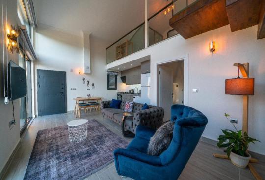 Salon : Oturma grubu, 4 kişilik yemek masası, internet , TV ve aksesuarlar mevcuttur.