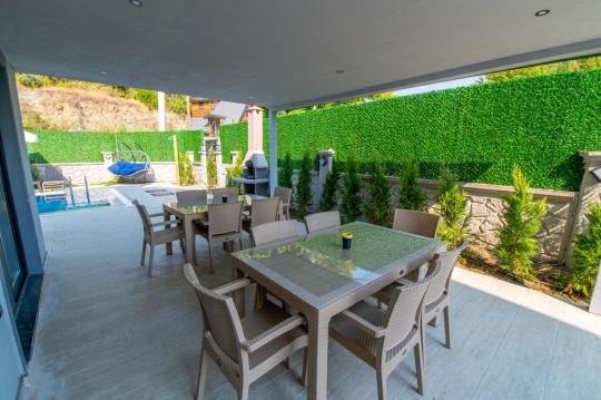 Bahçe : Bahçe içerisinde yüzme havuzu, bahçe masa ve sandalyeleri, şezlong, barbekü bulunmaktadır.
