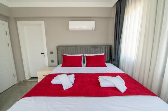 3. Yatak Odası: Çift kişilik yatak, elbise dolabı, klima, ebeveyn banyo/wc bulunmaktadır. (1.Katta)
