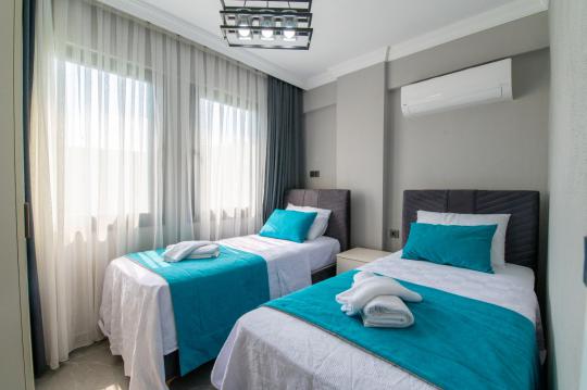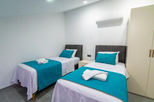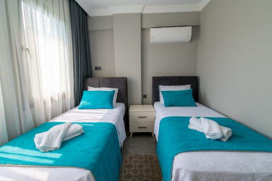 4. Yatak Odası: İki adet tek kişilik yatak, elbise dolabı, klima, bulunmaktadır. (1. Katta)