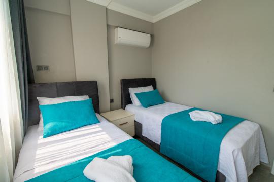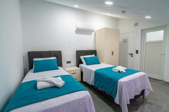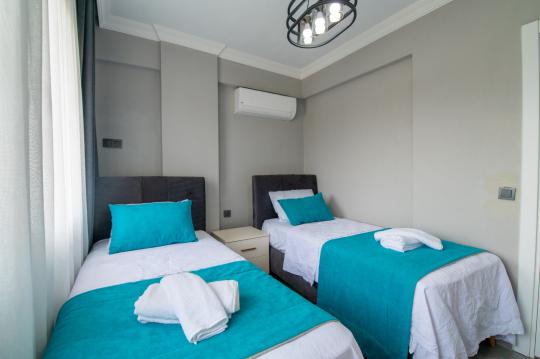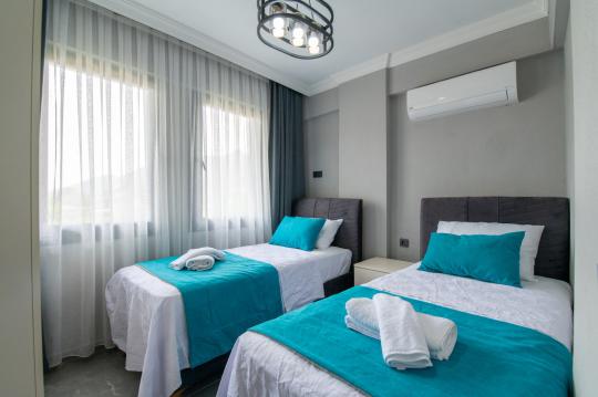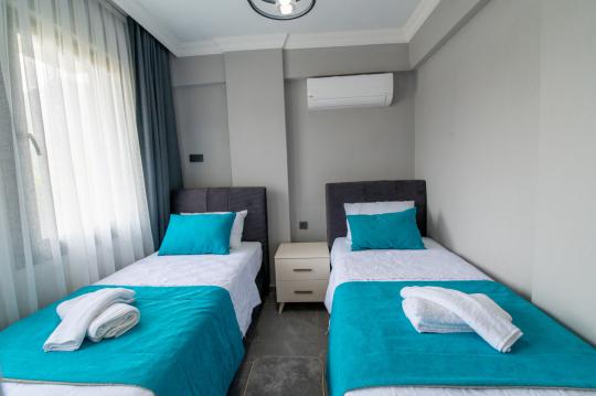 2. Yatak Odası: İki tek kişilik yatak, komodin, elbise dolabı, klima, bulunmaktadır. (Zemin Kat)