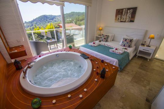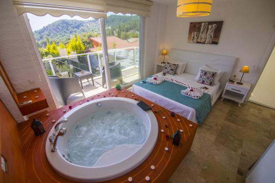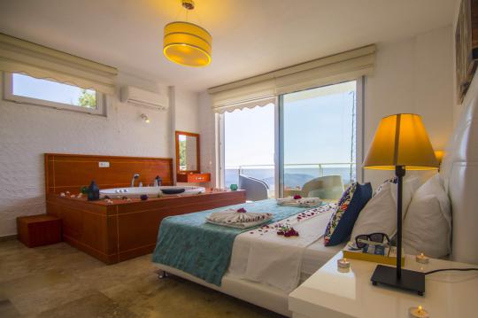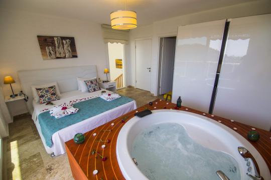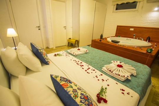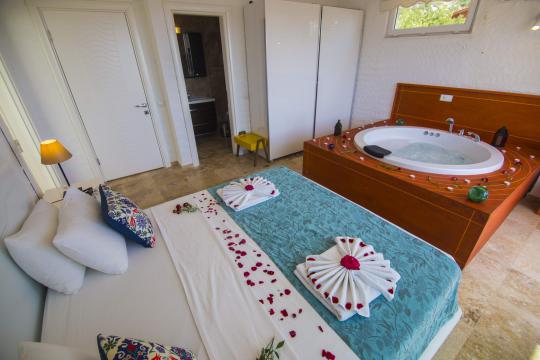 1.Yatak Odası: 1 adet büyük boy çift kişilik yatak, özel jakuzi, gardrop, komodin, makyaj masası ve banyo-WC yer almaktadır.