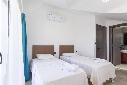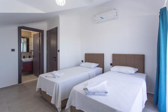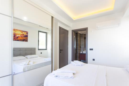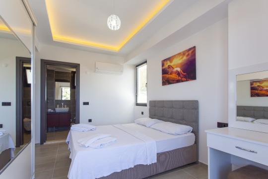 Villanın 4 yatak odası, şık ve konforlu bir şekilde tasarlanmıştır. Ferah yaşam alanları ve modern mutfağı ile hem ailelerin hem de arkadaş gruplarının ihtiyaçlarını karşılamak üzere düşünülmüştür. Çocuklu aileler için ekstra bir avantaj sağlayan çocuk havuzu, güvenli ve keyifli bir tatil deneyimi sunar.