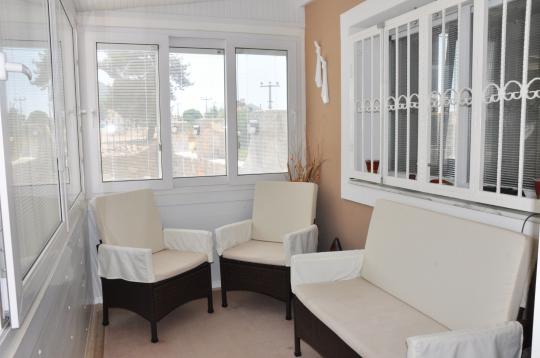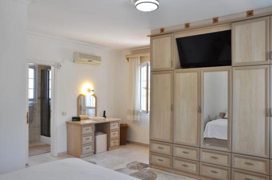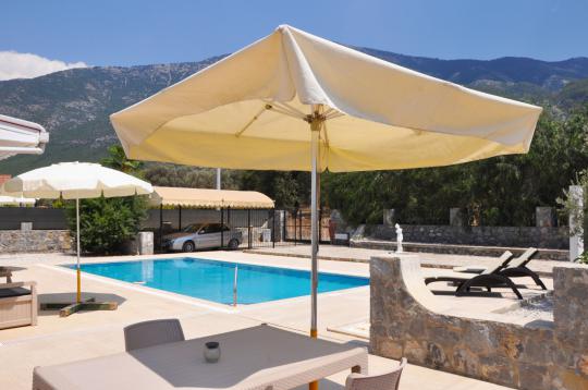Salon : Oturma odamız oturma grubu, klima, LCD TV, sehpa ve uydu alıcı ile donatılmıştır. Villamızın havuz terasına doğrudan çıkış yapabilirsiniz.