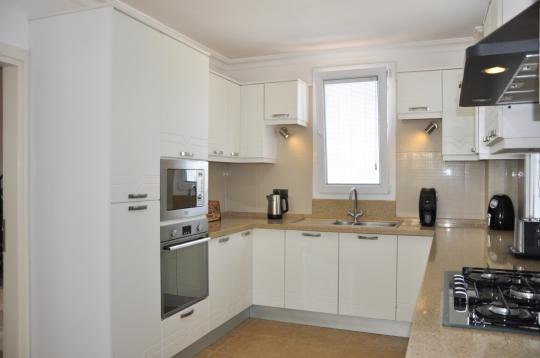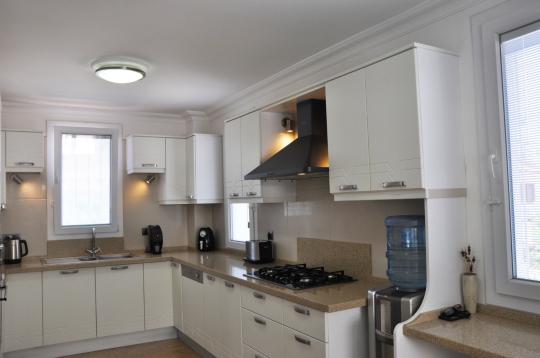 Mutfak : Modern Amerikan tarzı mutfağımızda buzdolabı, bulaşık makinesi, fırın, 4'lü ocak ve kettle bulunmaktadır. Ayrıca 10 kişilik yemek masası, yemek takımları, çatal bıçak setleri, tencere ve tava takımları ile bardaklar da mevcuttur.