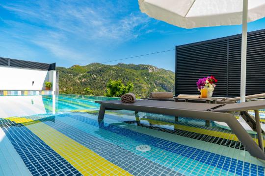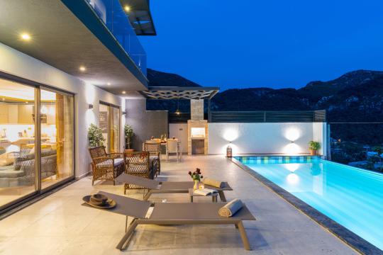 2019 Yılı Mayıs ayında yapımı tamamlanmış Kalkan İslamalar Köyünde konumlu VillaNorth, modern mimarisi ve şık tasarımıyla dikkat çeken konforlu, lüks kiralık villa seçeneğidir. Tüm detayların en ince ayrıntısına kadar düşünüldüğü villamızda, suit 2 yatak odası salon mutfak ve eğlenceli vakit geçirebirebileceğiniz modern sinema/oyun odası yer almaktadır. Korunaklı özel yüzme havuzlu bu villamız 4 kişi konaklama kapasitelidir.