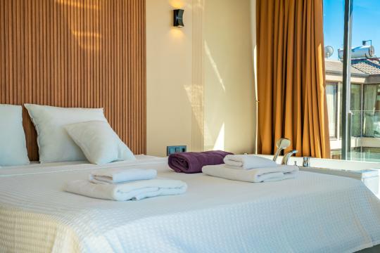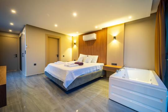 Yatak Odası 1:Çift kişilik yatak, gardırop, tuvalet masası, jakuzi, komodin, klima, banyo ve tuvalet bulunmaktadır.