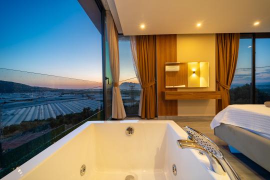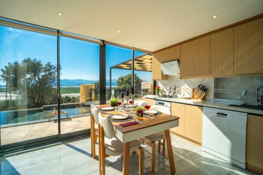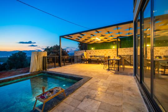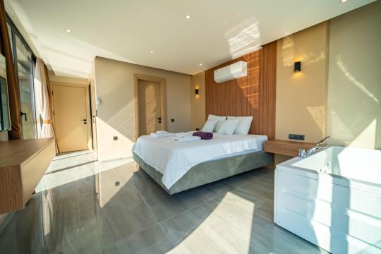 Villa Nurdan, şık ve modern tasarımıyla öne çıkan lüks 2 yatak odalı bir tatil villasıdır. Ana yatak odasındaki özel jakuzi, tatilinize ekstra rahatlama ve romantizm katarken, villanın zarif detaylarla dekore edilmiş iç mekanı konforunuzu en üst seviyeye taşır.