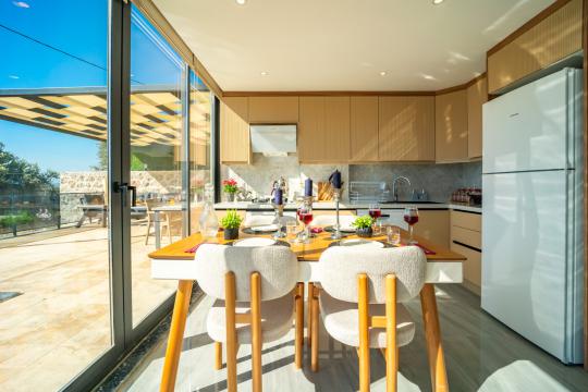 Mutfak: Beyazın hakim olduğu aydınlık ve ferah Villa Nurdan'da buzdolabı, bulaşık makinesi, ocak, fırın, mikrodalga fırın, ekmek kızartma makinesi, su ısıtıcısı, yemek masası, yemek takımı ve pişirme gereçlerinin bulunduğu Amerikan mutfak bulunmaktadır.