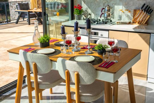 Hem mahremiyet arayan muhafazakar aileler hem de balayı çiftleri için ideal olan VillaNurdan, şehrin kalabalığından ve gürültüsünden uzak, doğayla iç içe, huzurlu bir atmosfer sunuyor.