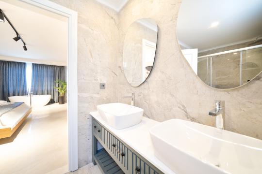 Not : Aynı dizayna, metrekareye ve özelliğe sahip olan 12 adet villamızda mobilya/eşya renkleri değişiklilik gösterebilir. Giriş işlemleriniz sırasında herhangi bir aksaklık ya da temizlik sürecinin uzaması gibi durumlarda rezervasyonunuz tesis bünyesinde yer alan aynı lokasyonda müsait olan birebir özellikte başka bir villaya alınabilir.