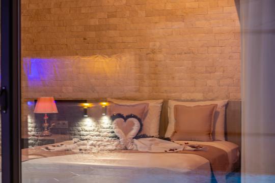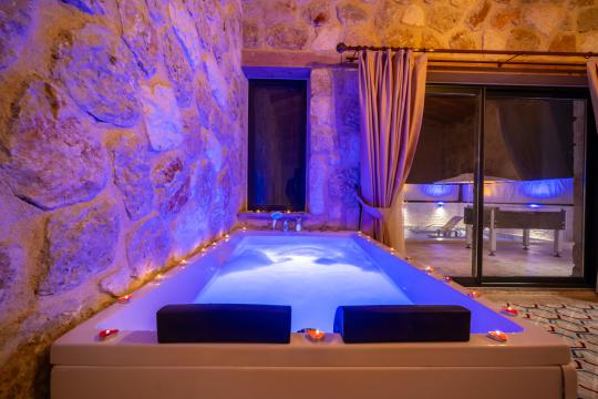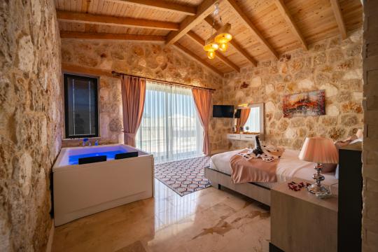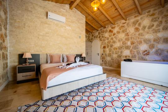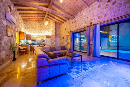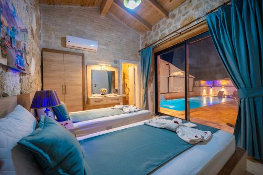 Villamızın içerisinde iki adet yatak odası ve iki adet banyo bulunmaktadır. Birinci yatak odası içerisinde iki adet tek kişilik yatak, banyo ve klima; İkinci yatak odası içerisinde, bir adet çift yatak, klima, jakuzi, banyo ve tv bulunmaktadır. Salon kısmında mutfak, klima ve televizyon bulunmaktadır.