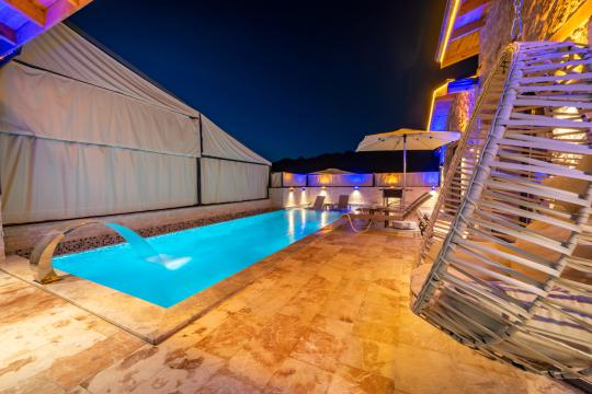 Villa Olivin 1, Kalkan Akbel mevkiinde havuzu oldukça korunaklı villamızdır. 4 kişi kapasiteye sahip villamız çekirdek aileler ve balayı çiftleri için oldukça idealdir. Modern ve konforlu iç dizayna sahip villamızda langırt, salıncak bulunmaktadır. Bu özellikleri sayesinde villamızda keyifli bir tatil fırsatı bulabilirsiniz.