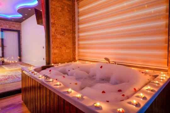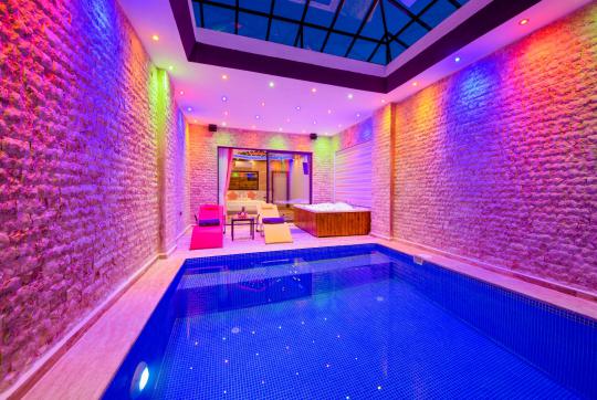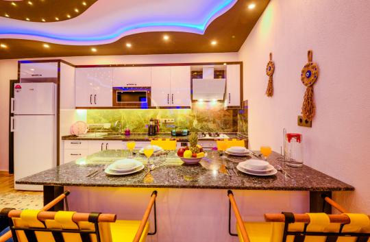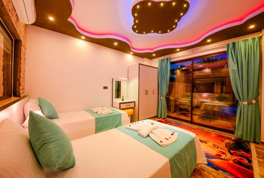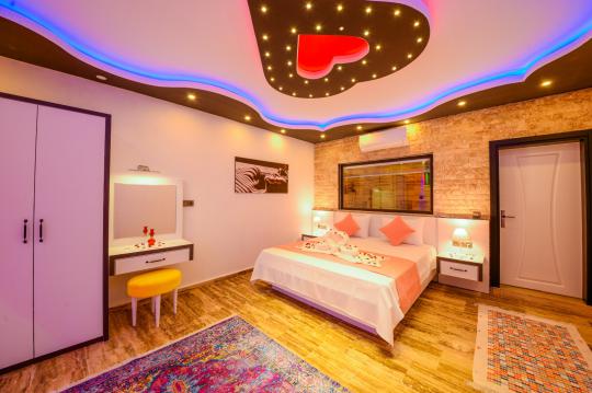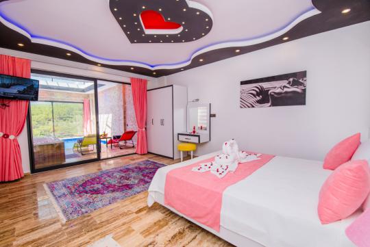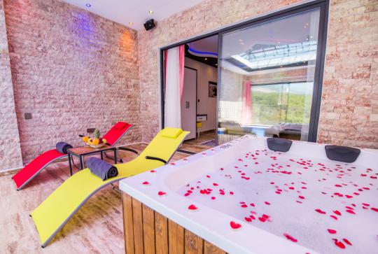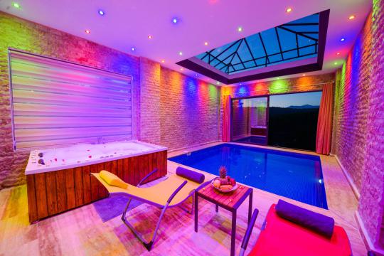 Villamızın içerisinde iki adet yatak odası ve iki adet banyo bulunmaktadır. Birinci yatak odasında çift kişilik yatak, klima, banyo, televizyon, jakuzi ve ısıtmalı havuz bulunmaktadır. İkinci yatak odası içerisinde iki adet tek kişilik yatak, klima ve banyo bulunmaktadır. Salon kısmında mutfak, klima ve televizyon bulunmaktadır.