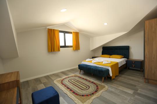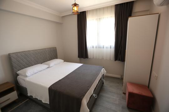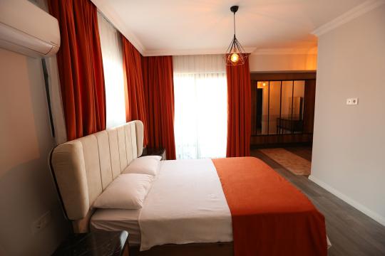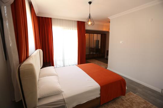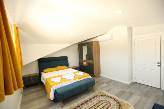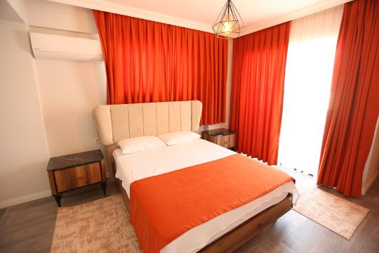4. Yatak Odası 1 çift kişilik yatak + komodin + elbise dolabı + makyaj masası + klima + ortak banyo
