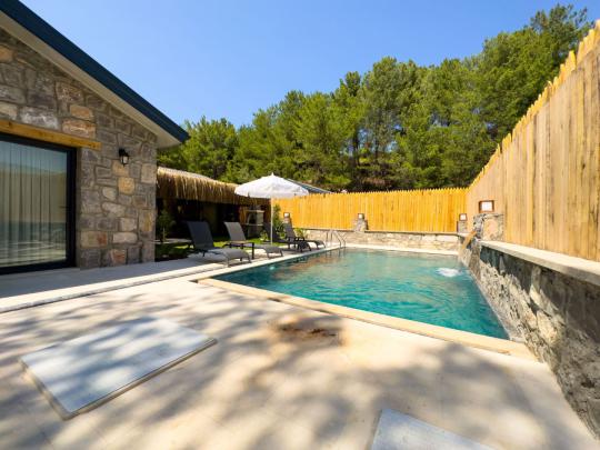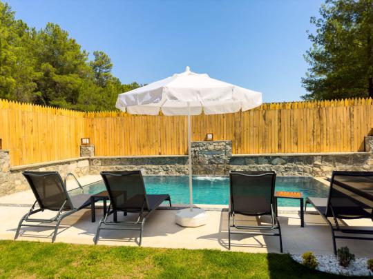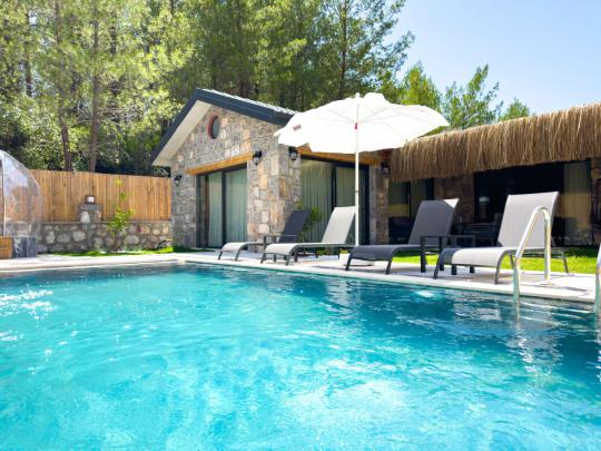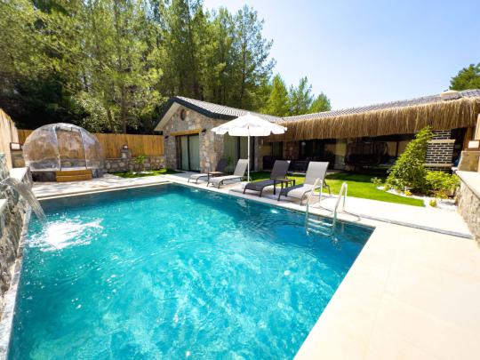 Seydikemer Belen mevkiinde doğa içerisinde konumlu 2 yatak odası bulunan 4 kişi konaklama kapasitesine sahip özel havuzlu ve jakuzili kiralık tatil villamızdır. Villamızın havuz terası korunaklı olup balayı çiftleri ve çekirdek ailelerin konaklamasına uygundur.Villamız Saunalıdır.