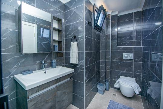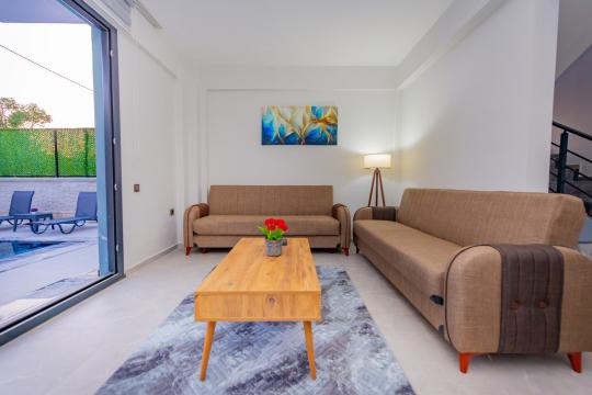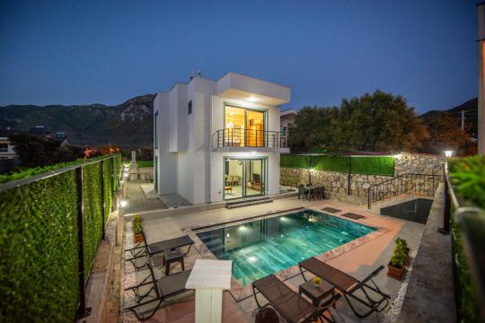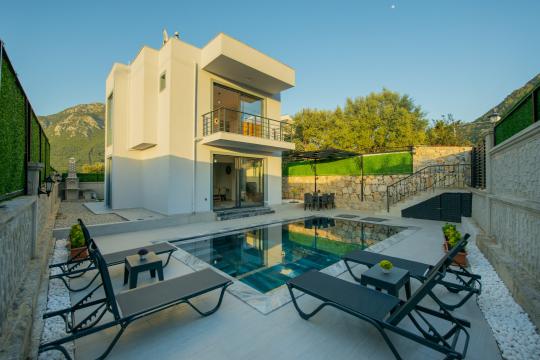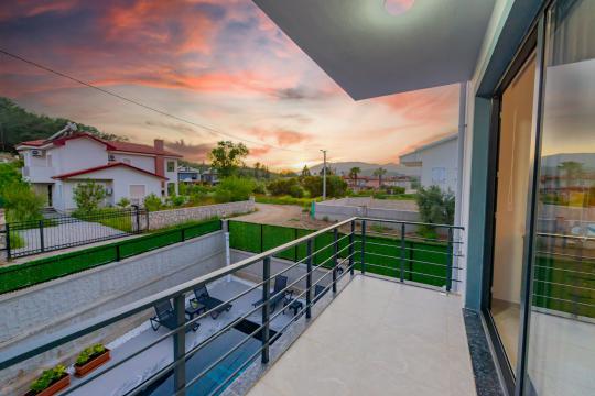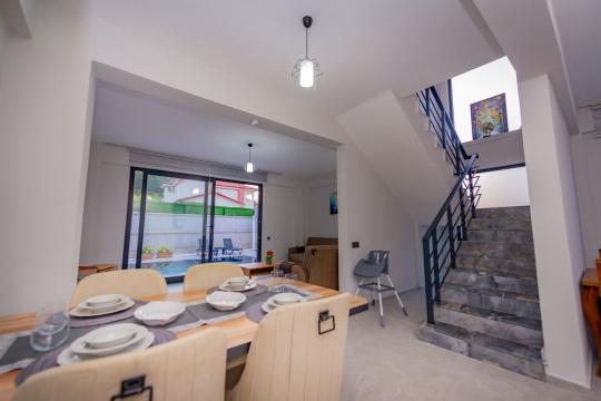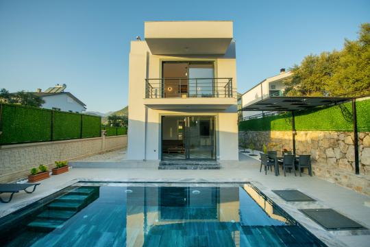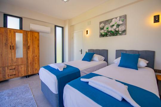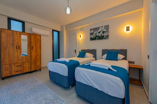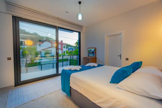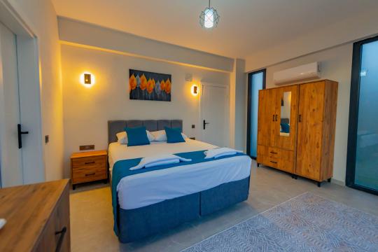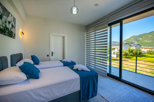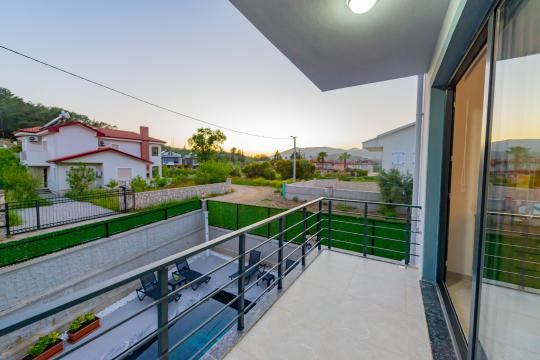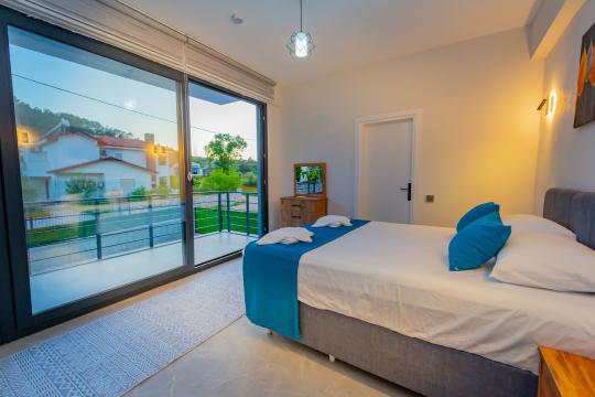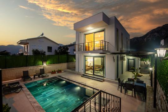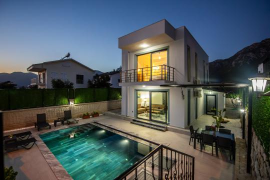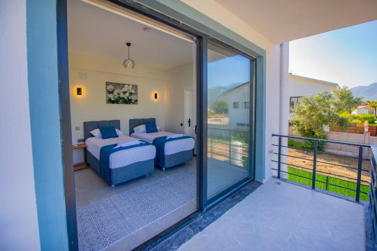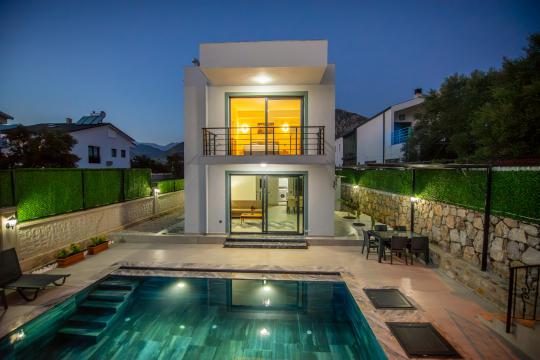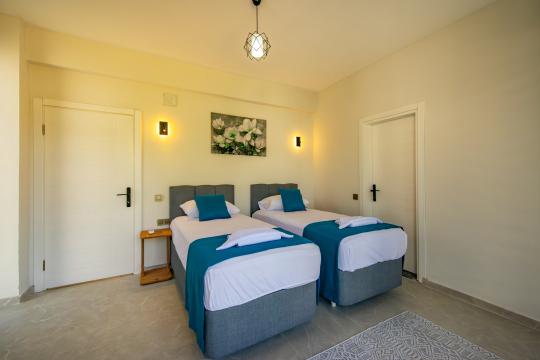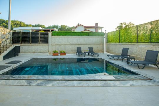 Geniş havuz alanı, konforlu oturma grubu ve özel barbekü alanına sahip olup iç mekanı da oldukça keyifli ve konforlu detaylar barındırmaktadır; oturma odası, donanımlı mutfağı; bir yatak odasında çift kişilik yatak, alt katında da iki yatak odasında çift kişilik yatak bulunan villa doğada güvenle ve huzurla planladığınız Fethiye tatiline ev sahipliği yapacaktır. Konforunuz döz önünde bulundurularak dizayn edilmiş bahçe alanı geniş havuz terasında sahiptir ve havuz bahçe alanında doğanın ve gökyüzünün tadını çıkarabileceğiniz bir havuz alanı bulunmaktadır.Birinci yatak odasında çift kişilik yatak ve ebeveyn banyosu ;ikinci yatak odasında ise iki adet tek kişilik yatak ve ebeveyn banyosu bulunmaktadır.