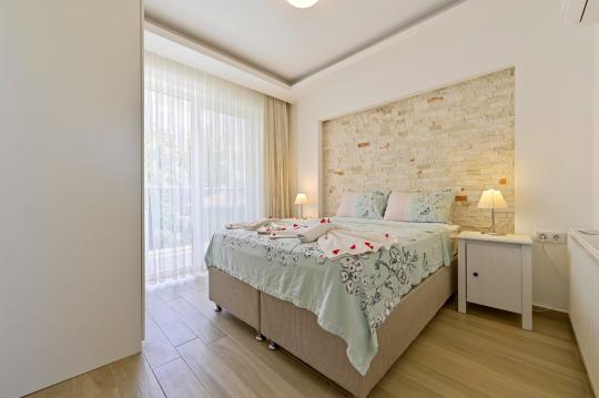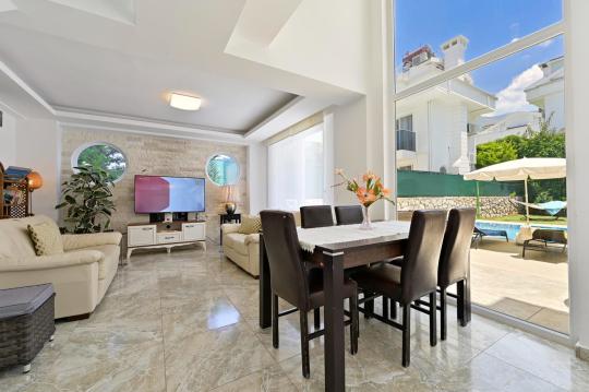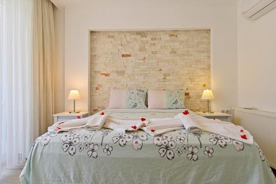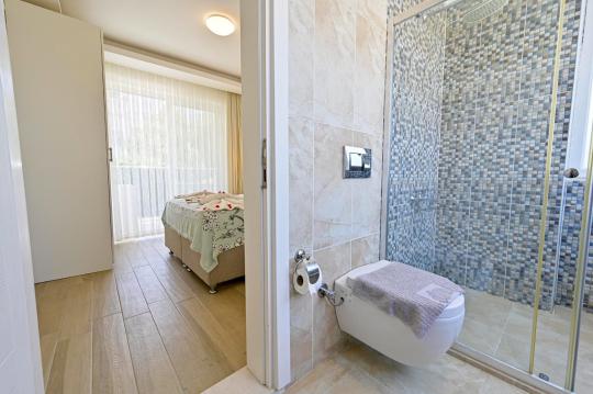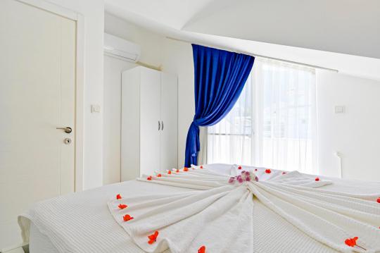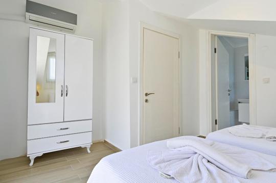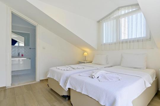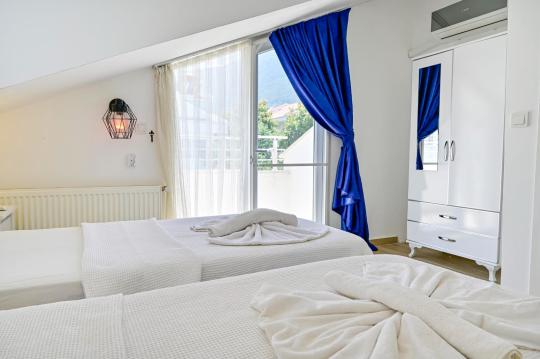 Villamızın içerisinde dört yatak odası ve dört adet WC-Duş bulunmaktadır. Birinci yatak odası içerisinde çift kişilik yatak, ebeveyn banyosu, klima yer almaktadır. İkinci yatak odasında çift kişilik yatak, ebeveyn banyosu, klima yer almaktadır. Üçüncü yatak odasında iki tek kişilik yatak, ebeveyn banyosu ve klima yer almaktadır. Dördüncü yatak odasında çift kişilik yatak, ebeveyn banyosu, klima yer almaktadır. Ortak alanda salon, oturma alanı , WC, klima, TV bulunmaktadır.