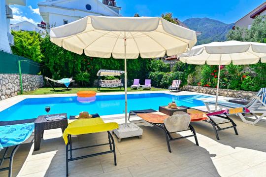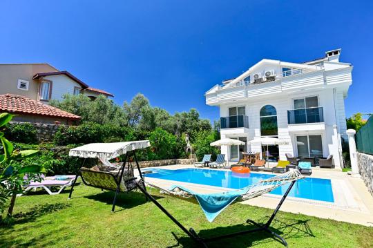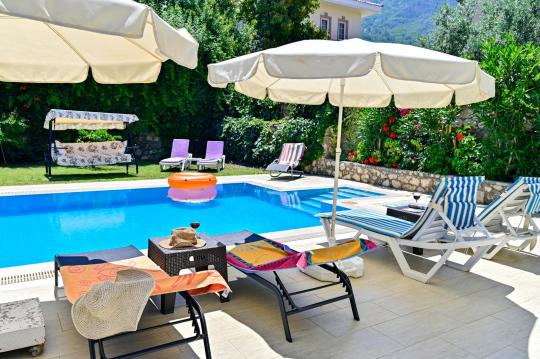 Villa Palace 1, Fethiye Ölüdeniz Ovacık bölgesinde konumlanan özel havuzlu villamızdır. Geniş bir bahçesi bulunan villamızın bahçe girişinde otoparkı mevcuttur. Zevkli bir iç donanıma sahip olan villamız da, misafirlerimiz eğlence mekanlarına, restoranlara ve marketlere araçsız rahatlıkla ulaşabilirler.
