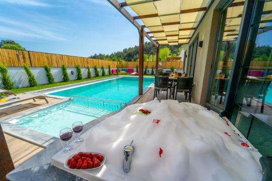 Havuzu korunaklı villalarımızda kesinlikle %100 görünmeme garantisi vermemekteyiz. Bu villalarımızda her zaman %5 sakınma payı mevcuttur.