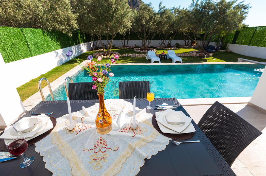 Bahçe : Şezlonglar, güneş şemsiyesi, barbekü, sandalye ve masa bulunmaktadır.