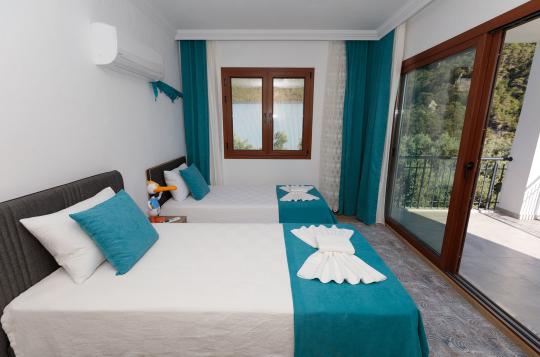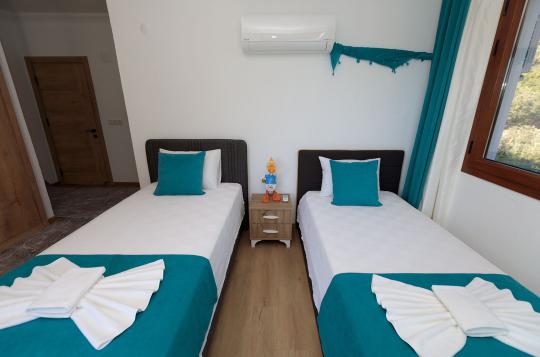 3. Yatak Odası : 2 adet tek kişilik yatak, klima, elbise dolabı, komodin, Bebek beşiği ve Banyo&WC bulunmaktadır.